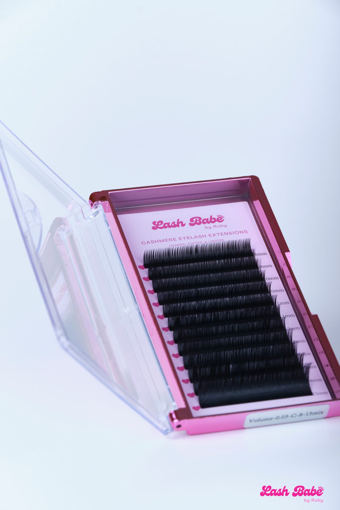 Cashmere lashes are thinner, softer and up to 60% lighter than silk lashes, making them the most popular and natural eyelash extensions. They're more flexible too, so curl retention is twice as strong, and they last longer than silk lashes.