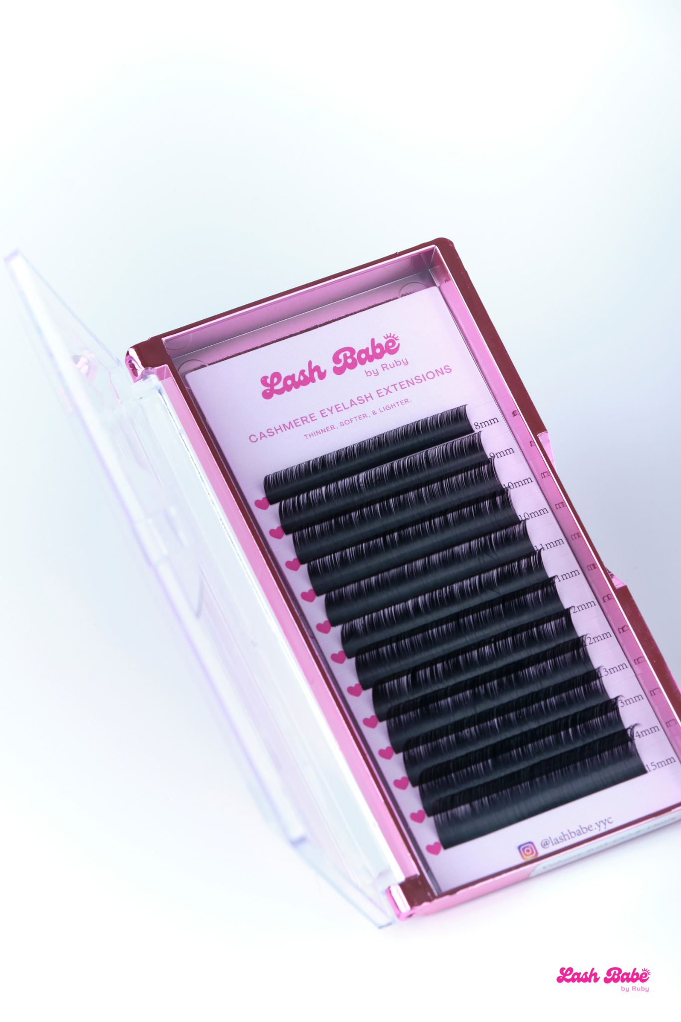 Cashmere lashes are thinner, softer and up to 60% lighter than silk lashes, making them the most popular and natural eyelash extensions. They're more flexible too, so curl retention is twice as strong, and they last longer than silk lashes.