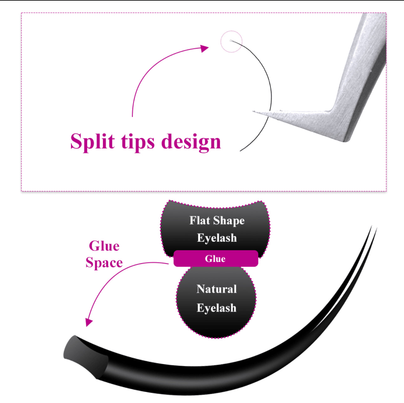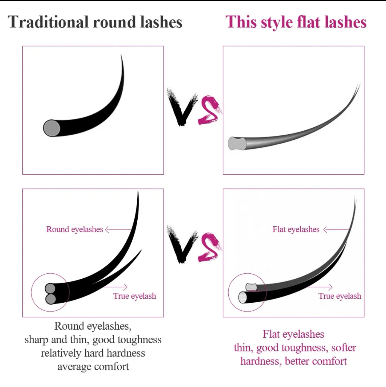 Flat lashes are flat at the base and taper off at the end to give a wider look. They look absolutely stunning in classic sets thanks to their rich black matte finish. They give more volume than the traditional classic eyelashes since their base is wider and larger than the traditional ones.